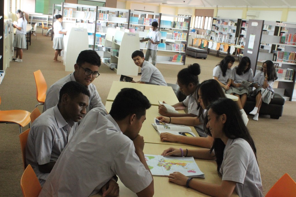 Ruang kelas nyaman ber-AC, laboratorium, ruang seni, lapangan olahraga, dan akses Google Suite for Education.